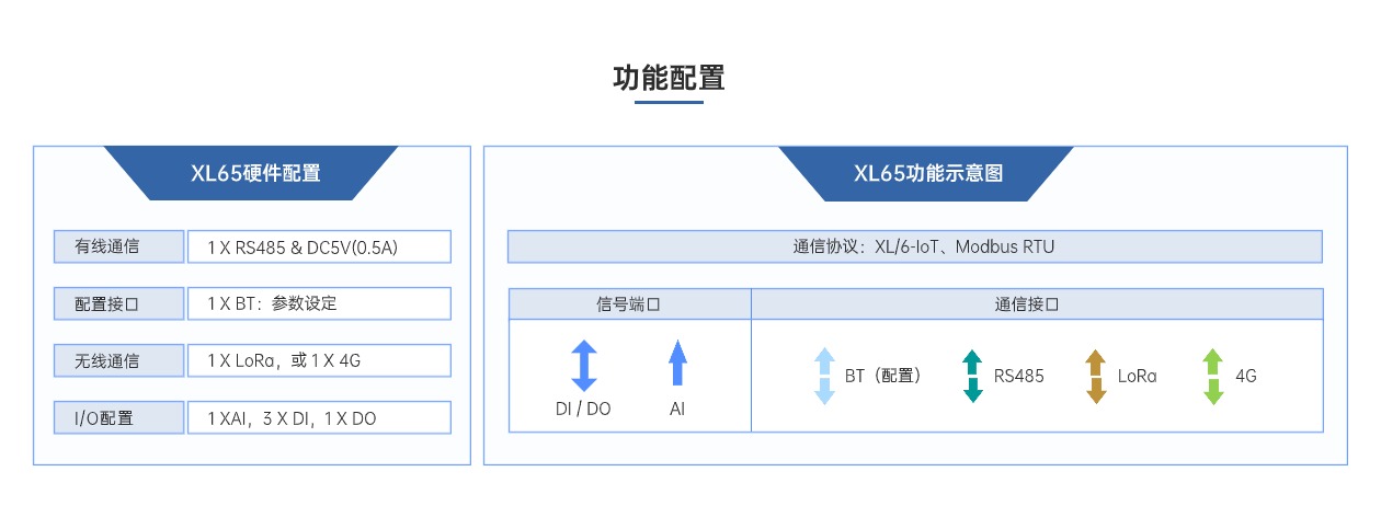 XL65無(wú)線(xiàn)采集模塊,是一款多功能、低功耗的數(shù)據(jù)采集設(shè)備,集成RS485通信口和豐富的I/0口(1AI、3DI、1DO),支持多種無(wú)線(xiàn)通信方式上傳采集的信號(hào)和數(shù)據(jù)??蛇x電池供電,適用于更多供電不便的場(chǎng)景。