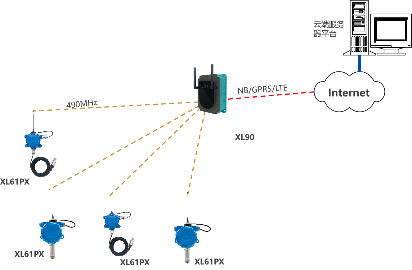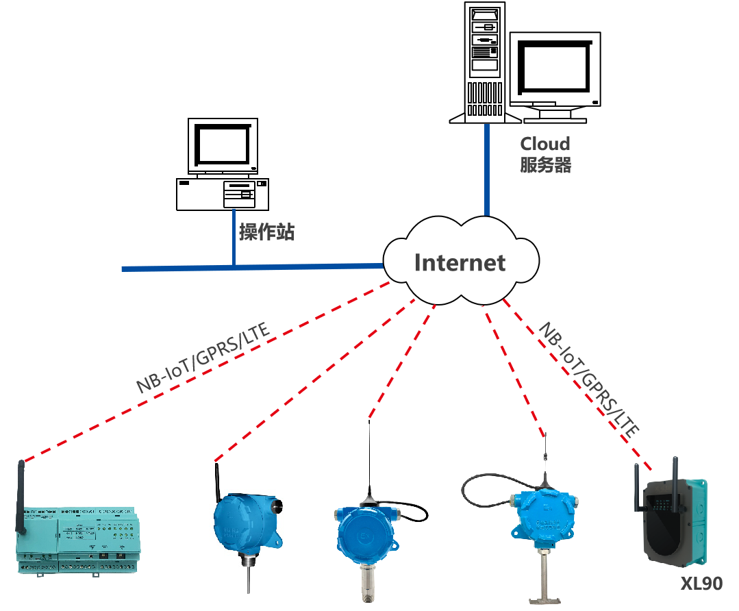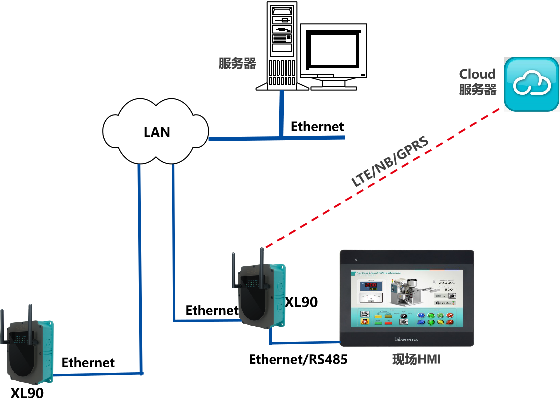 XL90,將數據上傳給企業內部的多個系統軟件平臺;通過LTE(4g)/NB/GPRS將數據上傳至云服務器