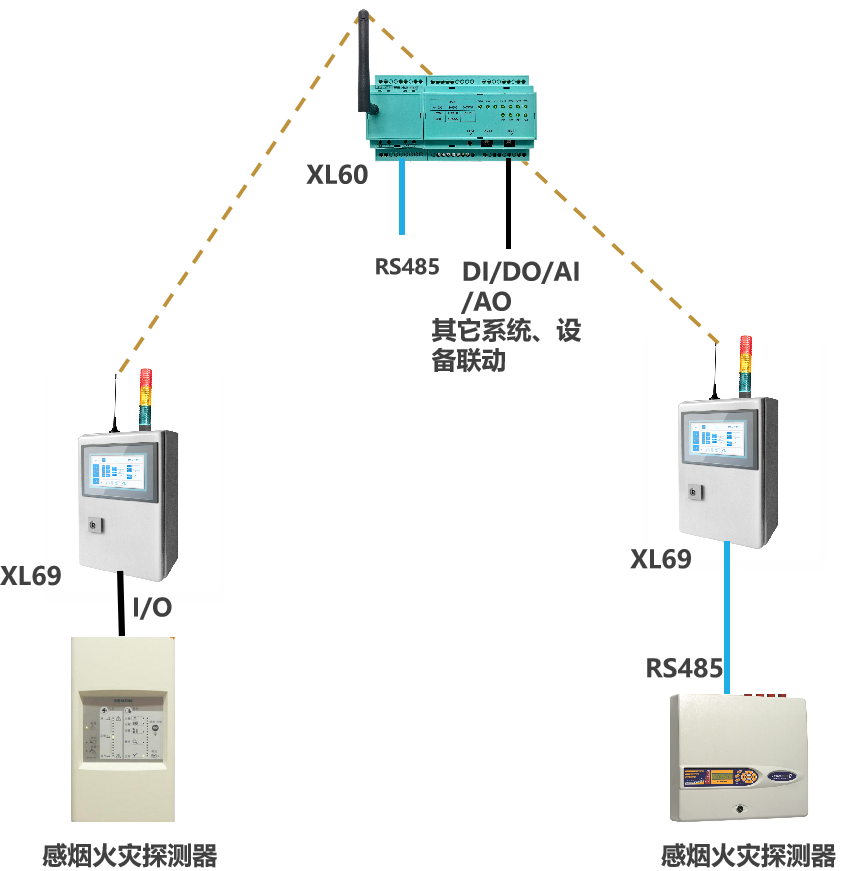 XL69智能終端,直接采集感煙探測器的信號,無線上傳,遠程測試、復位煙霧探測器;