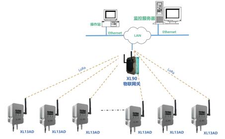 網絡層:XL13AD差壓傳感器通過LoRa無線傳輸數據至XL906物聯網關或XL97網關終端,網關可選Ethernet、Wi-Fi、4G等多種方式將壓差數據傳輸至監控平臺。