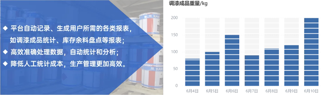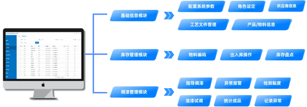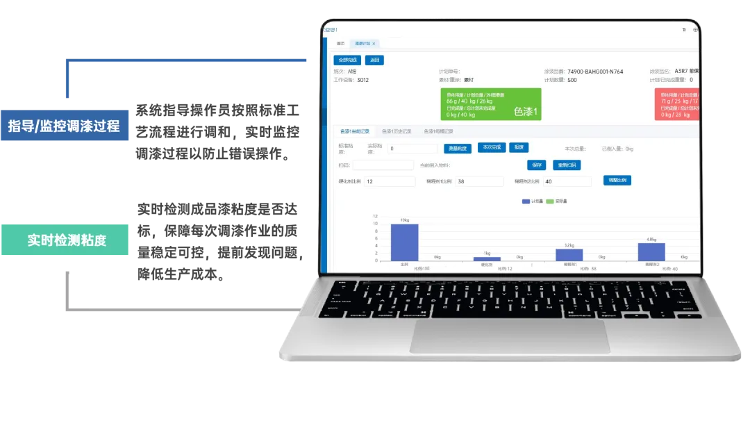在傳統(tǒng)的調(diào)漆和制漆過程中,過于依賴個(gè)人經(jīng)驗(yàn)技能,靠師傅帶徒弟的方式培訓(xùn),人為因素容易導(dǎo)致調(diào)漆質(zhì)量不穩(wěn)定、風(fēng)險(xiǎn)大;漆料選用、使用、調(diào)漆操作等都依賴人工記錄,導(dǎo)致質(zhì)量問題無法追溯、漆料浪費(fèi)大、統(tǒng)計(jì)數(shù)據(jù)不準(zhǔn)確等問題。