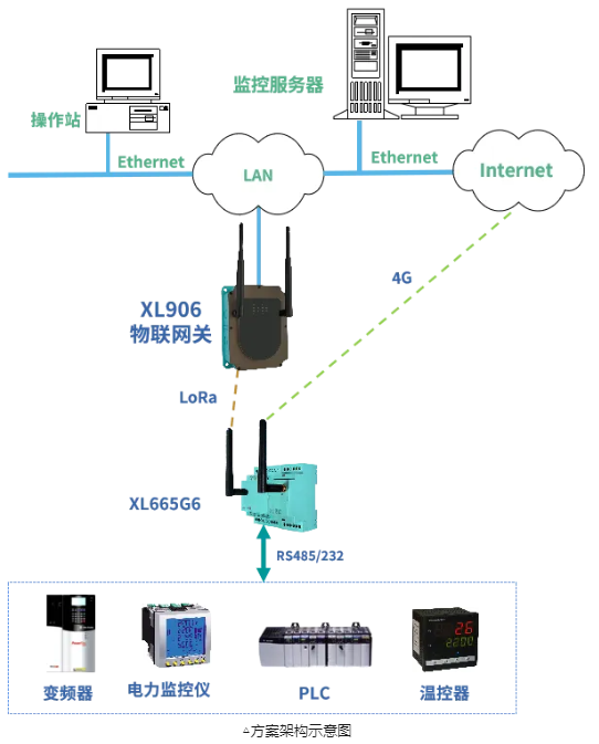 l 經由XL665多路通信模塊輸出的LoRa信號,可上傳至物聯網關,接入監控軟件平臺;