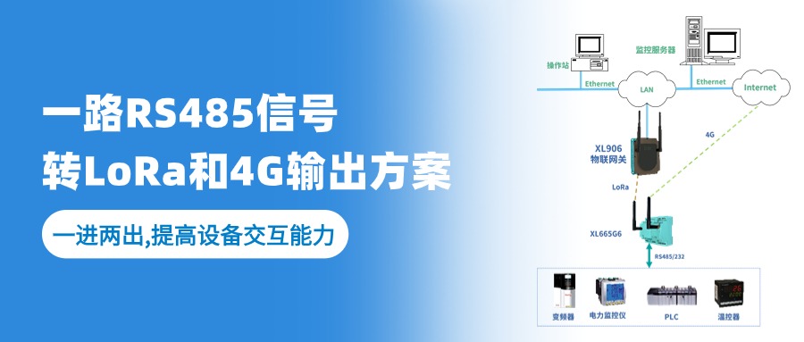 選擇XL665多路通信模塊,將1路RS485信號轉換成一路LoRa和一路4G輸出信號。