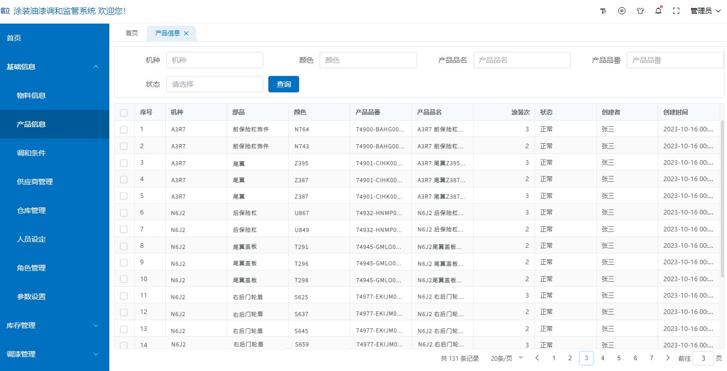 XPMS軟件平臺,是信立智能調漆系統的核心,由基礎信息、庫存管理和調漆管理三大功能模塊組成,有效規范調漆操作,提升調漆質量,減少漆料浪費,降低人為因素風險。軟件按調漆房的數量及設備數量進行授權,多個調漆房共用一套軟件平臺。