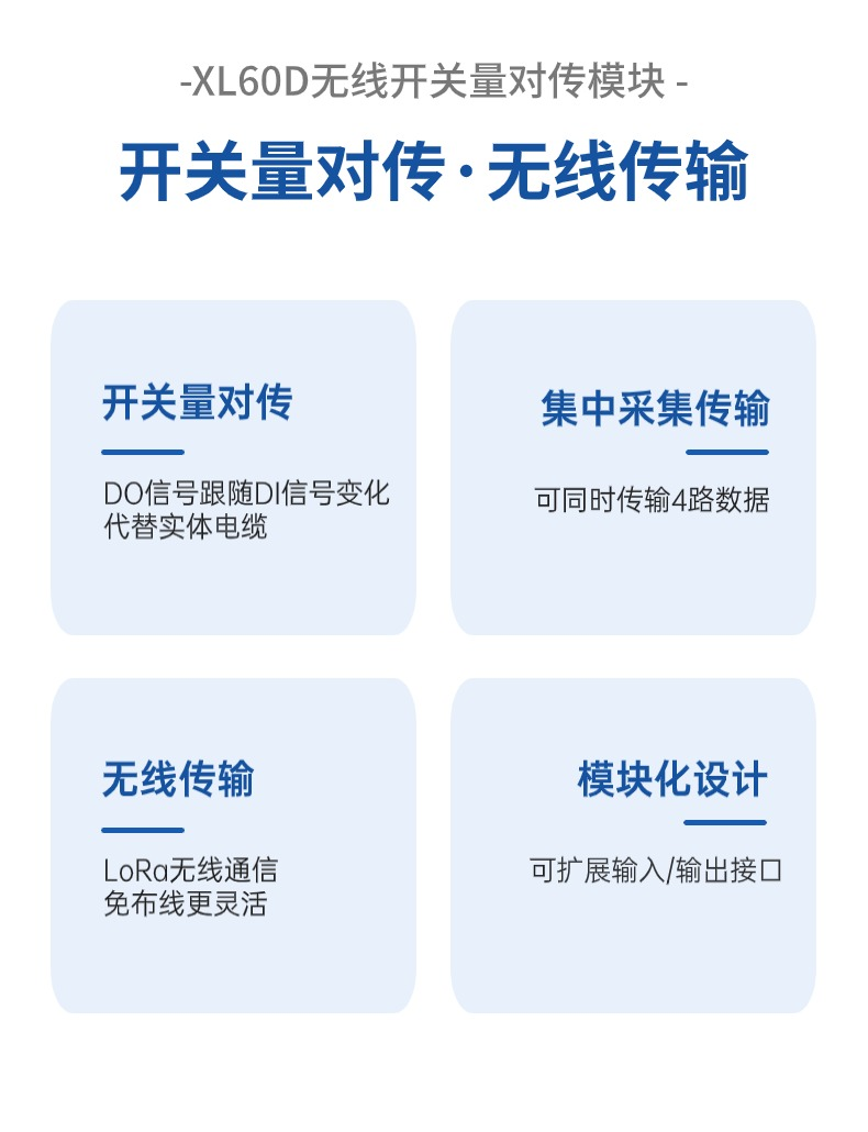 選擇XL60D無線開關量對傳模塊,接收控制儀表的開關量信號、輸出開關量信號控制生產設備啟停。